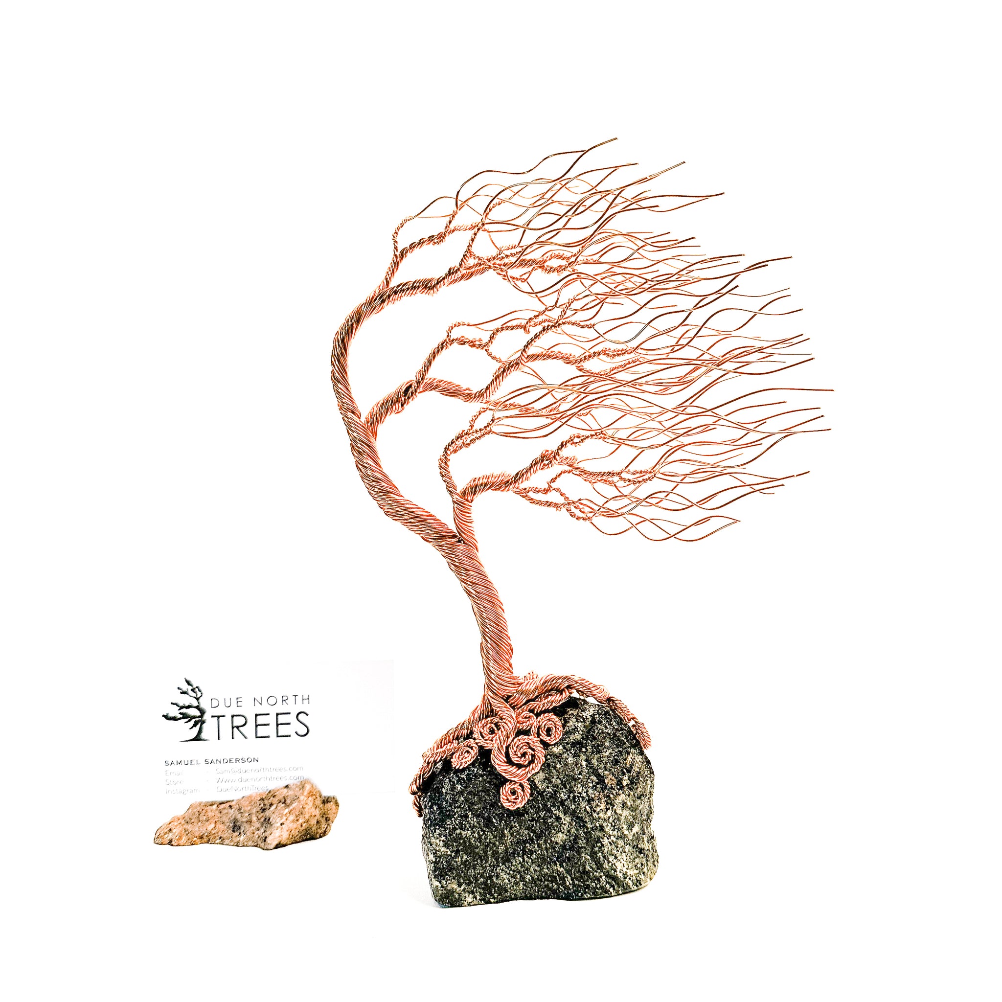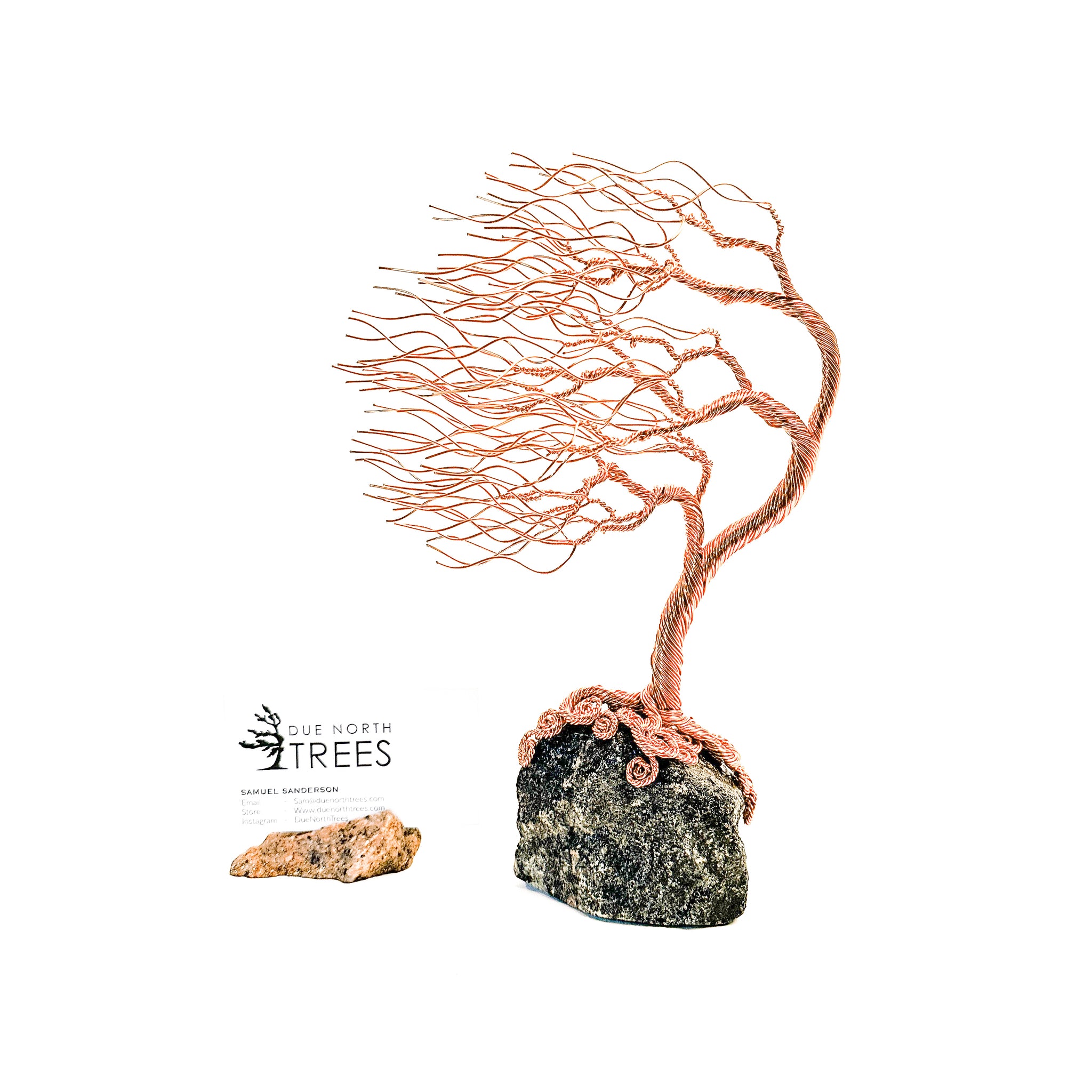 My name is Samuel Sanderson and I am from Ottawa Canada. I craft wire trees inspired by Canadian trees around me. Everything I do is by hand and each sculpture is uniquely shaped from twisted wires and local rocks. If you don't see quite what you are looking for, feel free to contact me and we can discuss a custom tree that matches what you envision.