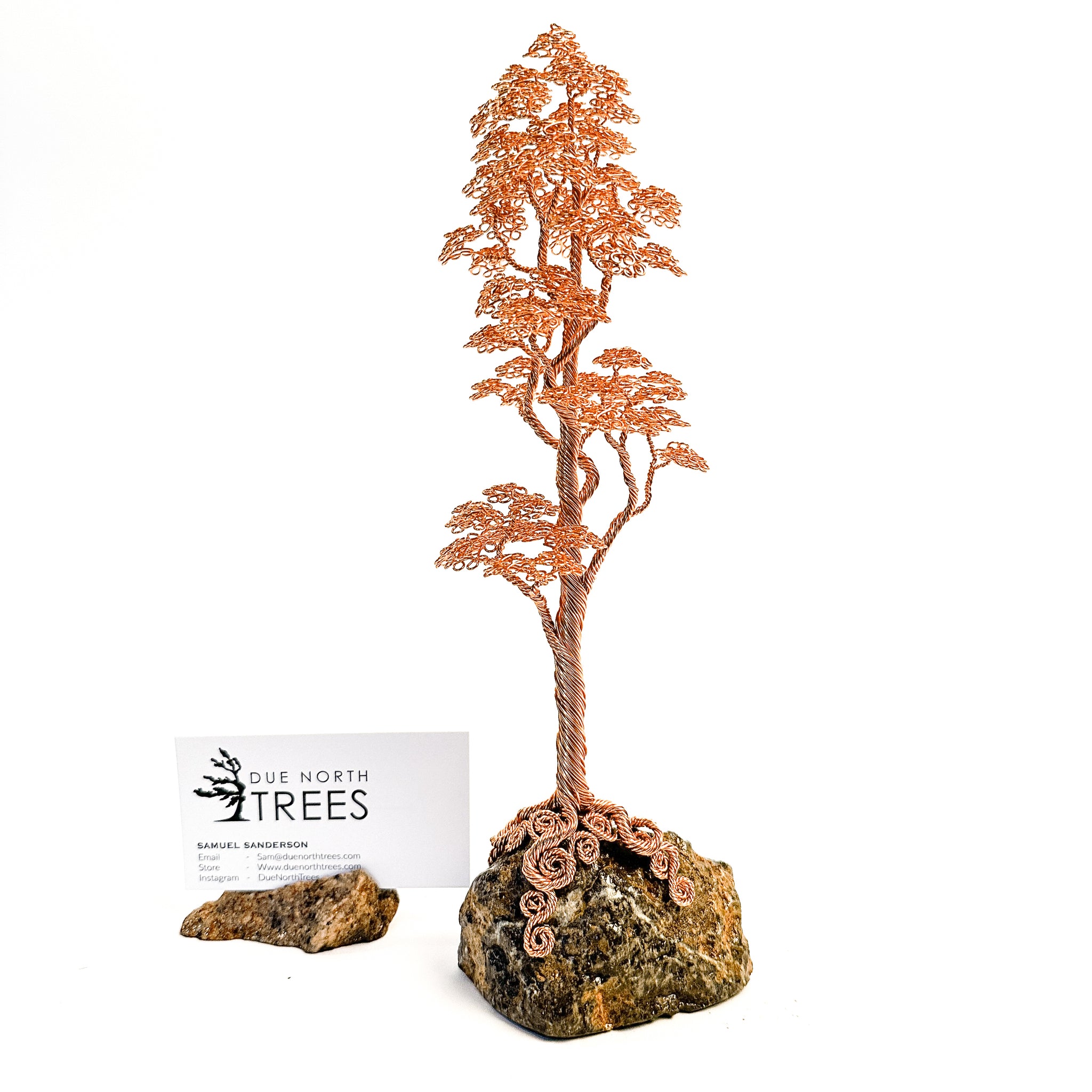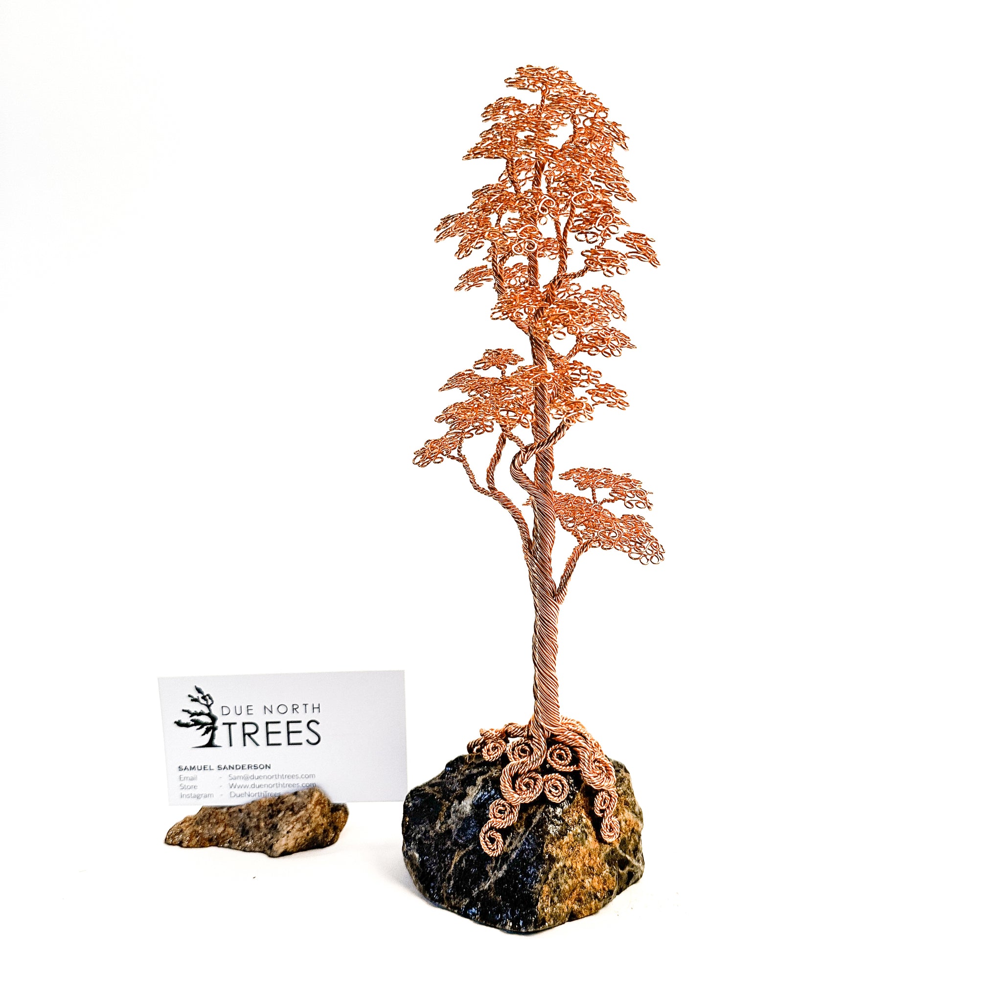 My name is Samuel Sanderson and I am from Ottawa Canada. I craft wire trees inspired by Canadian trees around me. Everything I do is by hand and each sculpture is uniquely shaped from twisted wires and local rocks. If you don't see quite what you are looking for, feel free to contact me and we can discuss a custom tree that matches what you envision.